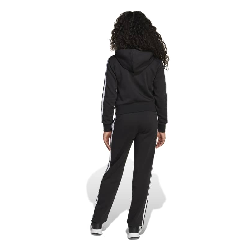 This juniors' adidas track suit is a versatile essential for anything the day might bring. The soft fleece build provides cosy comfort through any activity, and the iconic 3-Stripes down the sides keep the look sporty and stylish. The jacket's sleek fit pairs perfectly with the open-hem pants for a modern, everyday outfit. From running errands to casual meetups with friends, this track suit has you covered.