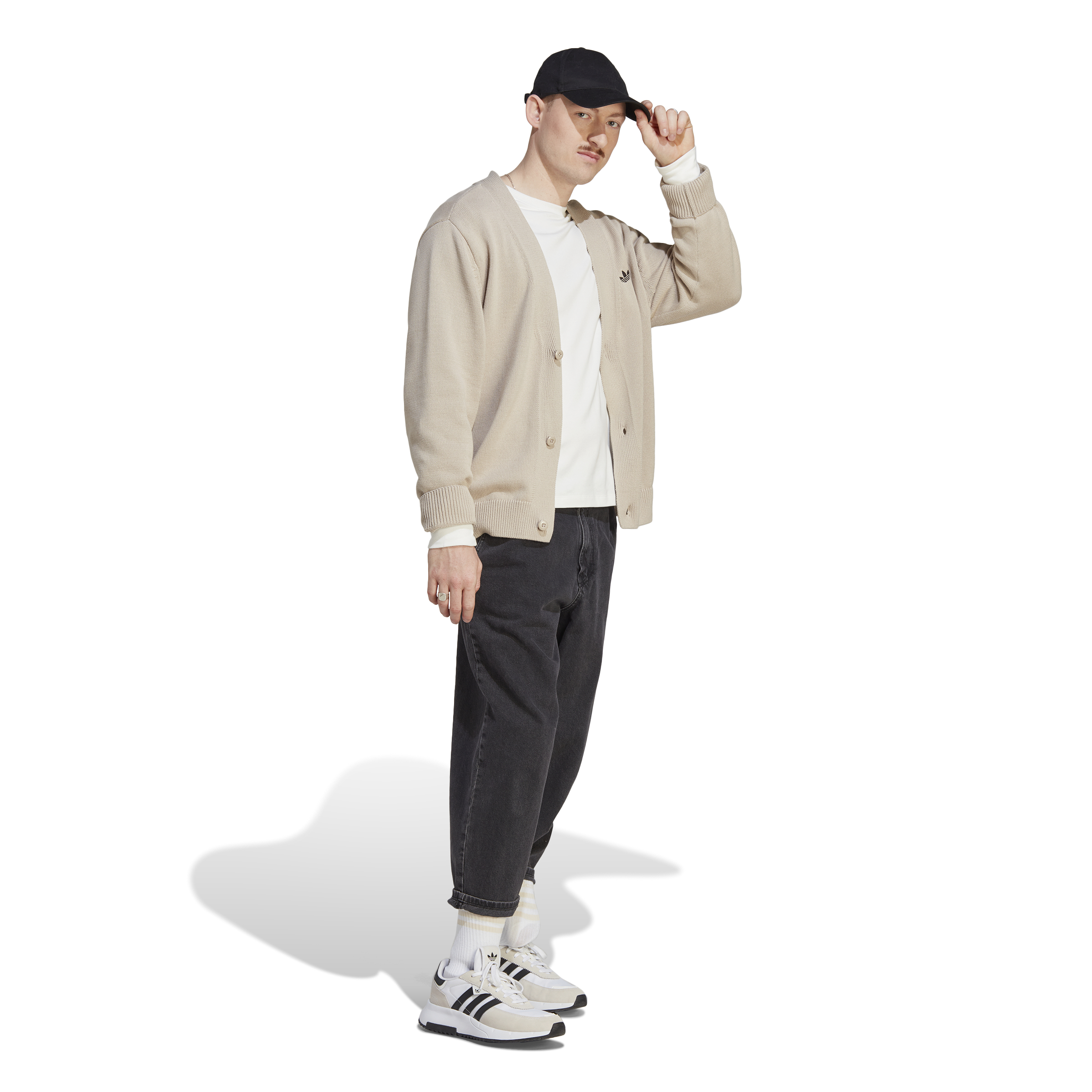 When an oversized cut meets classic style, casual steps it up. Blending a timeless silhouette with a roomy feel, this cardigan takes on a sophisticated vibe. It's made of soft cotton and easy to layer over a tee or oxford shirt. Knit 3-Stripes down the back add adidas Originals style, and the cosy ribbed hem and cuffs tailor the look to tie it together.