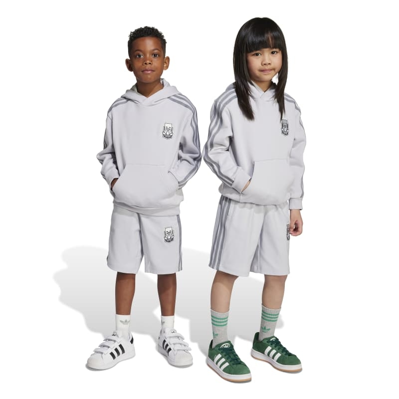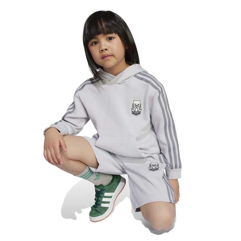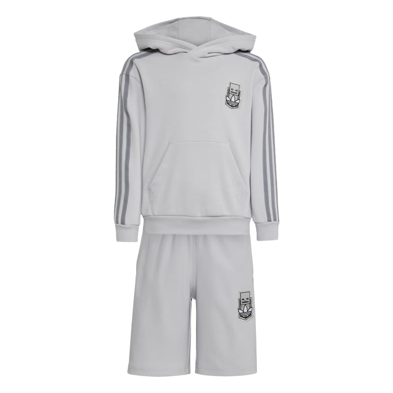 The worlds of Minecraft and adidas come together in this kids' shorts set, featuring Minecraft's iconic Creeper, Zombie and Skeleton characters. Made to keep kids comfortable through any adventure, this set includes a pullover hoodie and roomy shorts. Soft cotton-blend fabric feels cosy and gentle against their skin.