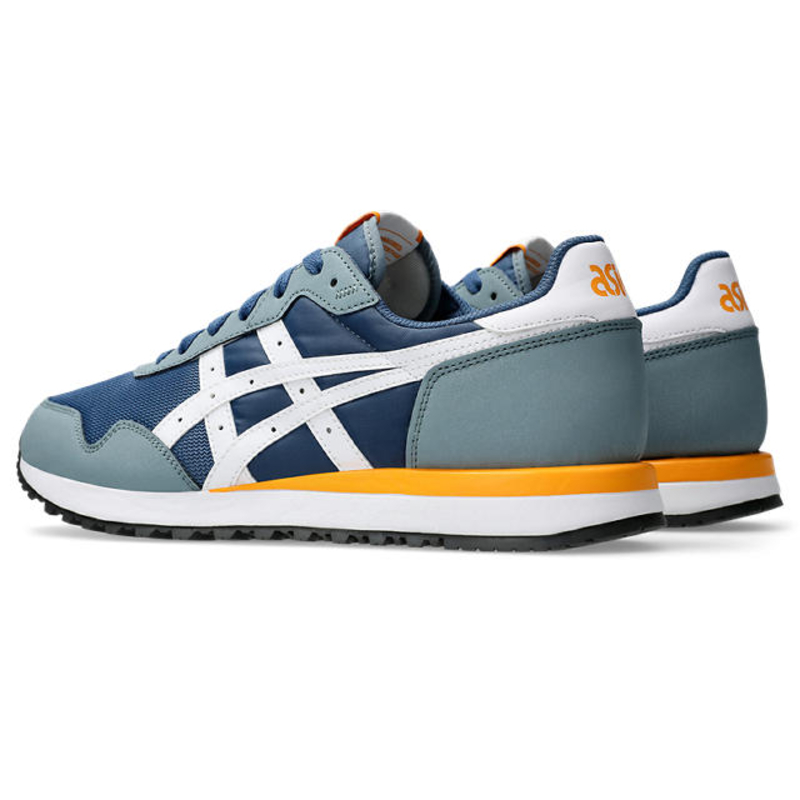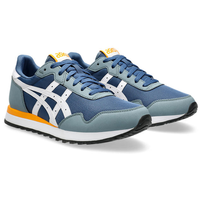 The TIGER RUNNER II shoe draws inspiration from the 1980s jogging movement. Its nostalgic aesthetic features modern embellishments, like updated materials and cushioning properties.
