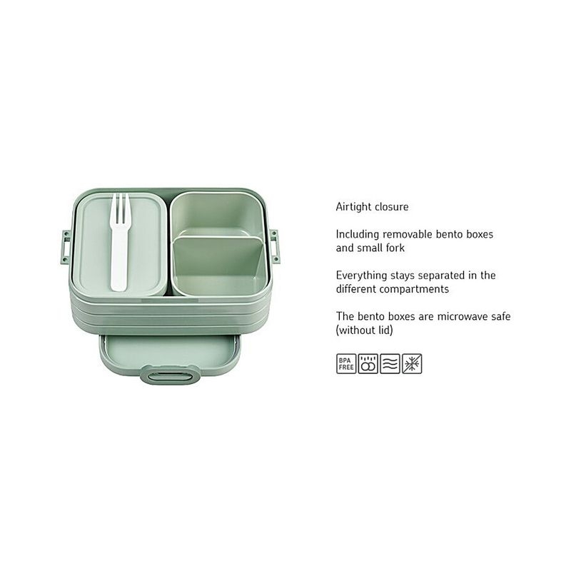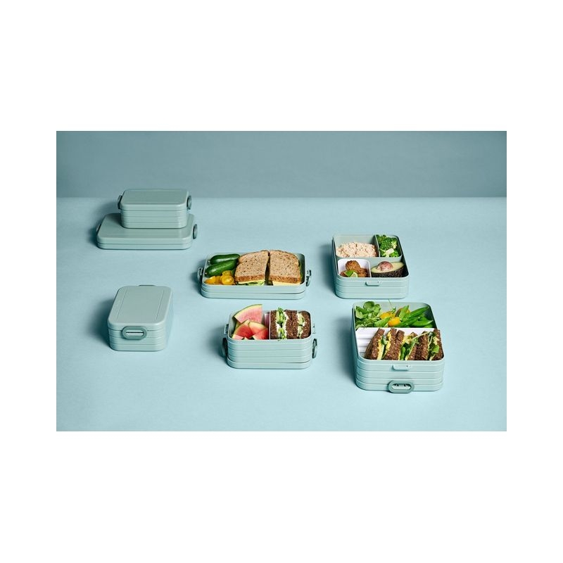 صندوق غداء Take a Break بالحجم المتوسط واللون البنفسجي الفاتح. يشمل صناديق بنتو منفصلة. هل بقيت بقايا من عشاء الليلة الماضية؟ احزمها لتناولها على الغداء في صندوق Take a Break. بفضل حجرتين منفصلتين، بالإضافة إلى صندوق إضافي مع شوكة، ستضمن صناديق البنتو في صندوق غدائك أن يظل غدائك طازجًا ولذيذًا! ابتكر تركيبات لا حصر لها من أطعمتك المفضلة في صندوق البنتو Take a Break. أنت من يقرر أين ومتى تتناولها! صندوق الغداء هذا مع صناديق بنتو متين للغاية ويتميز بمظهره الفريد. يمكن استخدام صناديق البنتو داخل صندوق الغداء في الميكروويف (بدون أغطية). مثالي لتجميع مجموعة متنوعة من الأطباق الصغيرة، حتى تتمكن من الاستمتاع بغداء مختلف كل يوم!