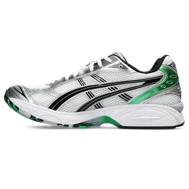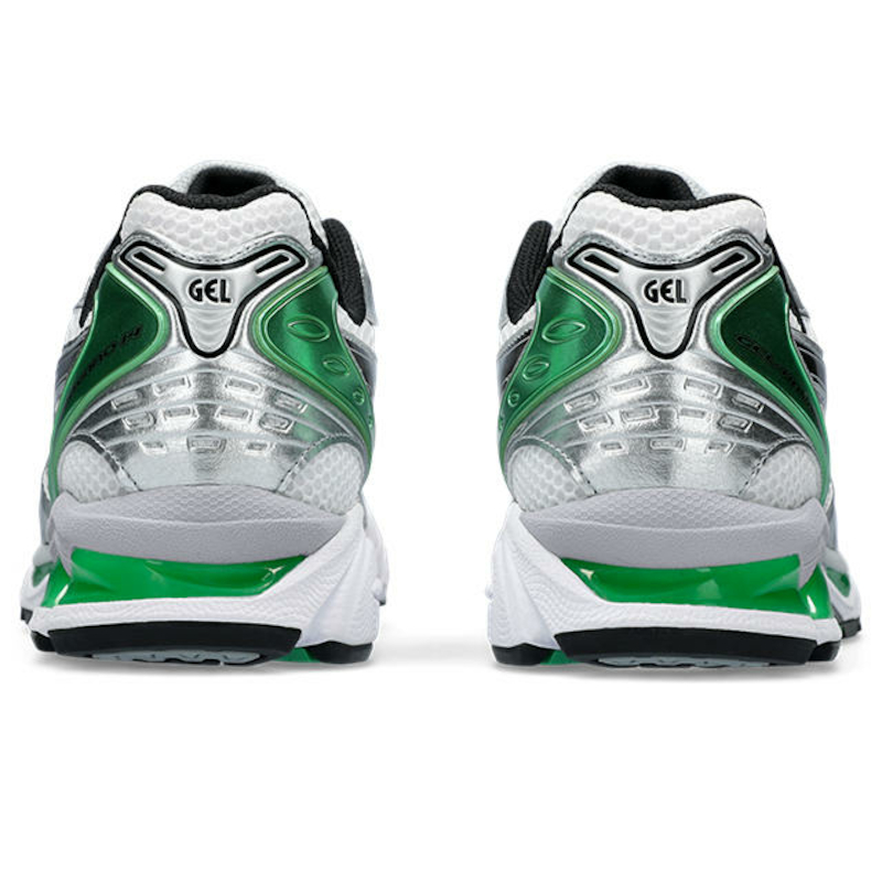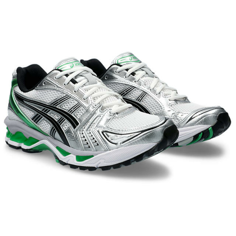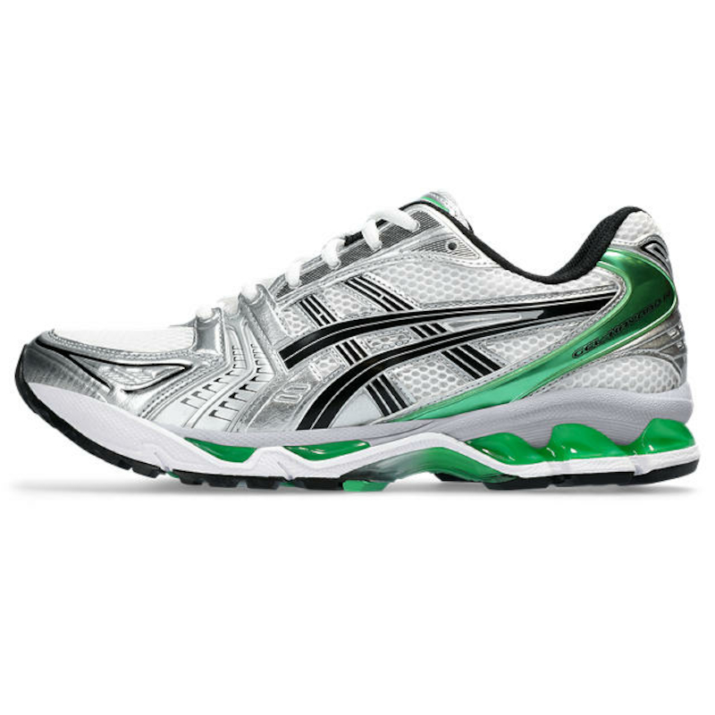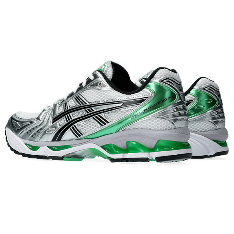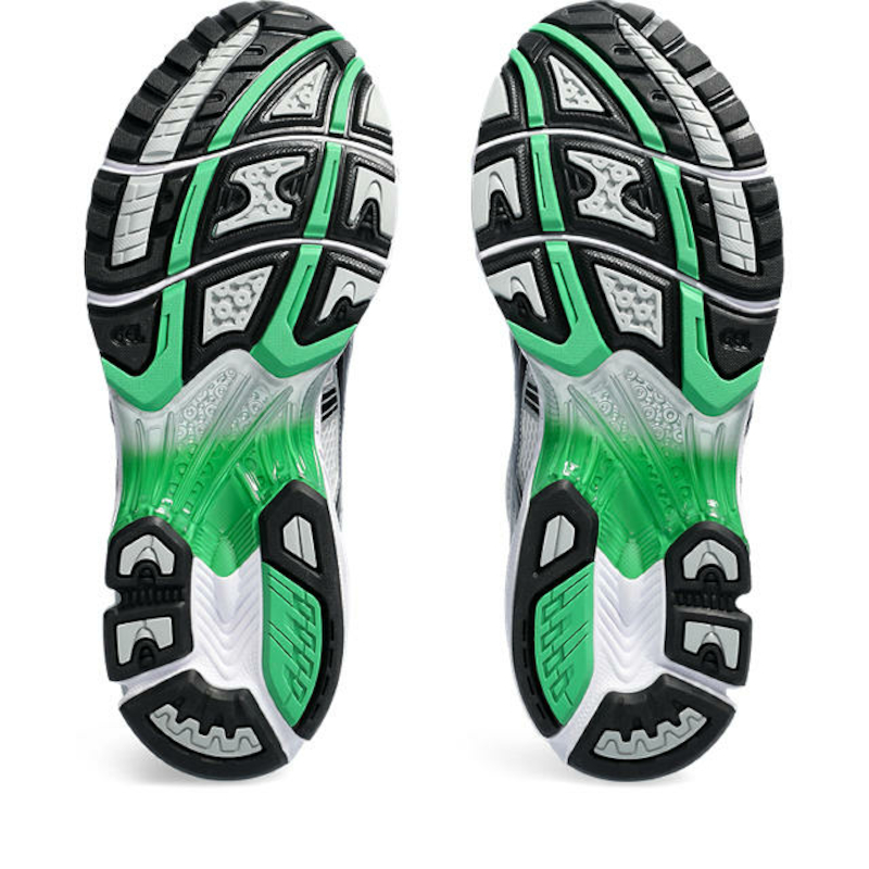 Arriving here is a the perfect touches of Malachite Green, gleaming with pride via the heel accent and the GEL cushioning inserts on the heel and fore-foot. That lucky shade also persists through the exposed plate on the mid-foot and into the traction towards the toe. The remainder of the shoe relies on the basic (but hardly basic) arrangement of metallic silver, black, and white mesh base for those with that impeccable taste.