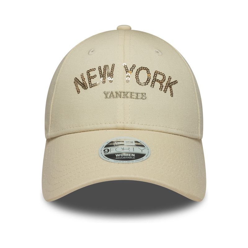 Womens MLB Sequin Wordmark New York Yankees Light Beige 9FORTY Adjustable Cap
