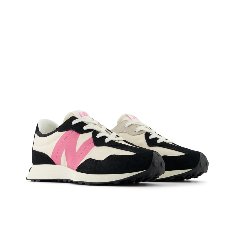 بعد أن حقق الجري الترفيهي حقق شعبية واسعة النطاق في السبعينيات، تحول معيار أحذية الجري من مجرد كونها أحذية إلى أحذية متخصصة الأداء. ففي حين أن تصميمات تلك الحقبة تعتبر بسيطة وفقًا لمعايير اليوم، إلا أن هذا العقد من الزمان يتميز بمرجعية خاصة؛ حيث أصبحت فيه أحذية الركض فئة خاصة مستقلة. ويسلط الحذاء 327 الضوء مرة أخرى على فترة السبعينيات باعتبارها فترة الابتكار، من خلال إعادة تشكيل عناصر التصميم الكلاسيكي بشكل واضح، مع مظهر عصري تمامًا. من خلال إعادة تصميم للشكل الضخم المتدرج بزوايا وشعار العلامة التجارية "N" كبير الحجم بشكل غير متماثل، والنعل الخارجي الموتد المرفوع لأعلى من الأمام، يمثل الحذاء 327 إعادة تصور كامل لتراثنا في أحذية الركض. يأتي الحذاء 327 للأطفال بشكل كلاسيكي أقل ضخامة ليلائم قدمي طفلك الصغيرتين.