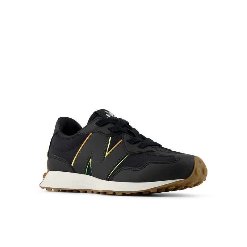 بعد أن حقق الجري الترفيهي حقق شعبية واسعة النطاق في السبعينيات، تحول معيار أحذية الجري من مجرد كونها أحذية إلى أحذية متخصصة الأداء. ففي حين أن تصميمات تلك الحقبة تعتبر بسيطة وفقًا لمعايير اليوم، إلا أن هذا العقد من الزمان يتميز بمرجعية خاصة؛ حيث أصبحت فيه أحذية الركض فئة خاصة مستقلة. ويسلط الحذاء 327 الضوء مرة أخرى على فترة السبعينيات باعتبارها فترة الابتكار، من خلال إعادة تشكيل عناصر التصميم الكلاسيكي بشكل واضح، مع مظهر عصري تمامًا. من خلال إعادة تصميم للشكل الضخم المتدرج بزوايا وشعار العلامة التجارية "N" كبير الحجم بشكل غير متماثل، والنعل الخارجي الموتد المرفوع لأعلى من الأمام، يمثل الحذاء 327 إعادة تصور كامل لتراثنا في أحذية الركض. يأتي الحذاء 327 للأطفال بشكل كلاسيكي أقل ضخامة ليلائم قدمي طفلك الصغيرتين.