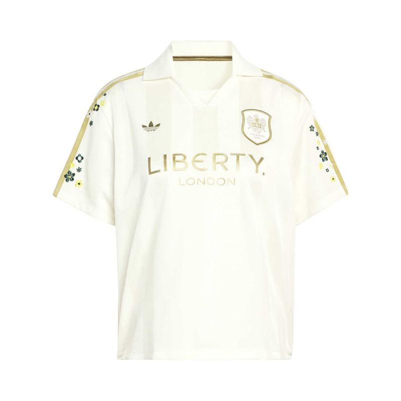 تلتقي الأناقة بالرياضة في قميص adidas Originals x Liberty London. مستوحى من التراث الغني لـ Liberty والروح الديناميكية لكرة القدم، هذا القميص هو شهادة على الأناقة والابتكار.