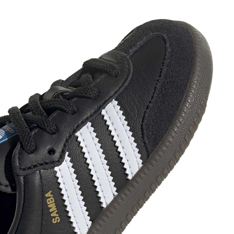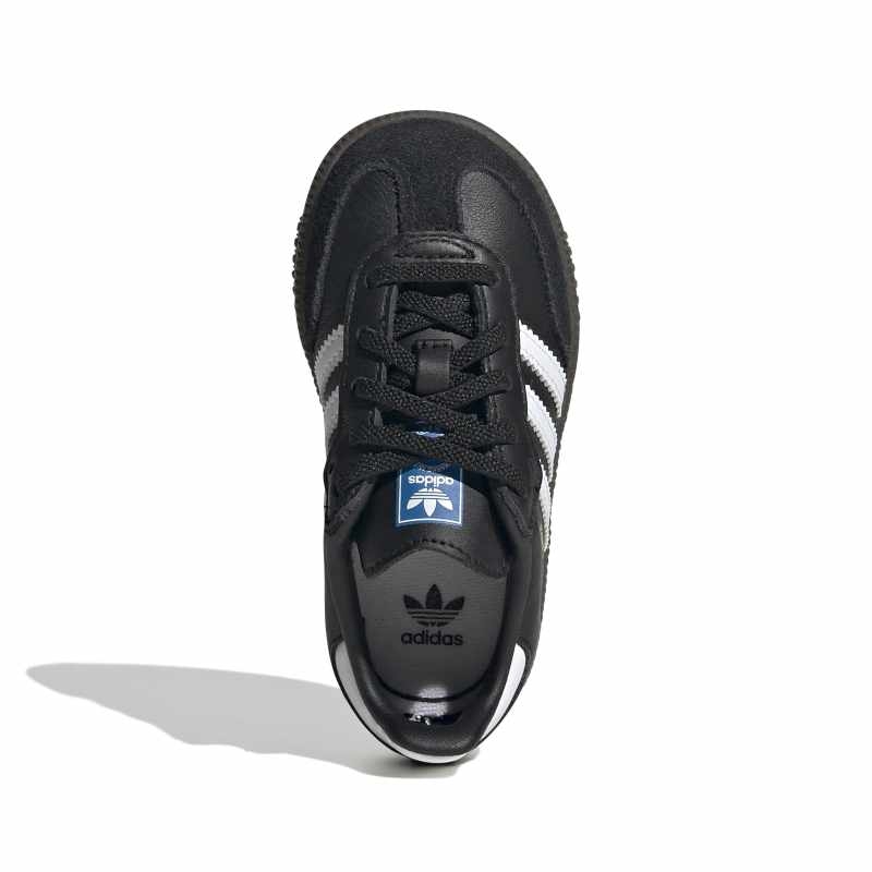 If you time travelled back to the 1960s, you'd find pro soccer players wearing adidas Sambas just like these infants' shoes. Well, almost just like them. Sized down to fit little feet, they feature a soft sockliner that feels comfortable through all-day play. A leather upper, gum rubber sole and 3-Stripes stay classic.