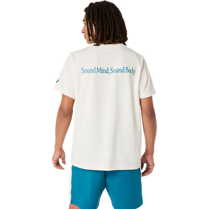 It's made with a quick-drying and textured cotton blend fabric for daily comfort. The top also features the ASICS slogan, "Sound Mind, Sound Body" on the back.