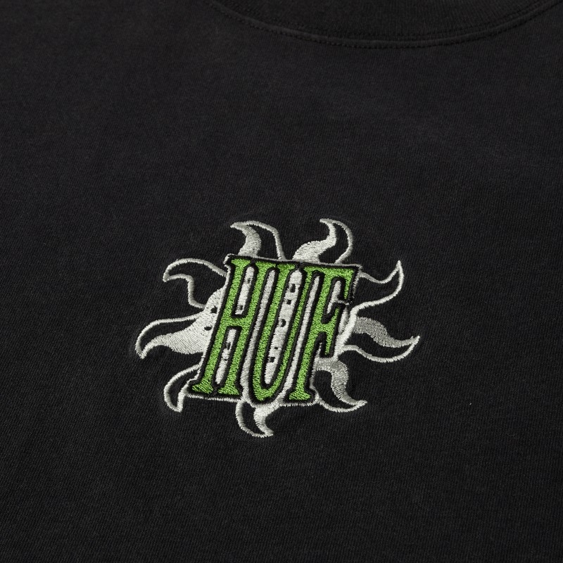 100% cotton pigment washed short sleeve tee Embroidered artwork at center chest HUF woven label at interior neck