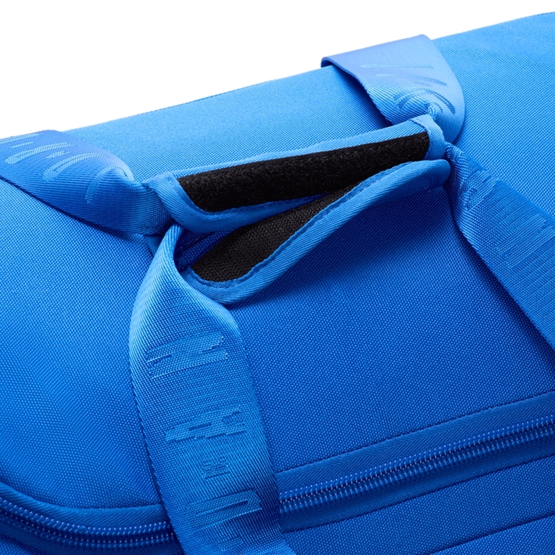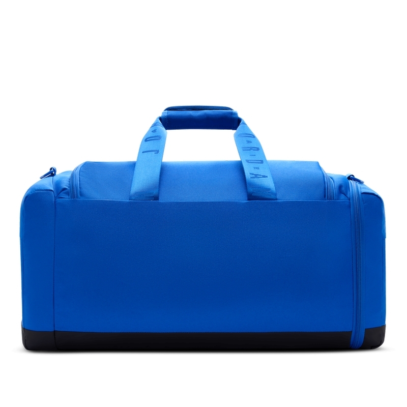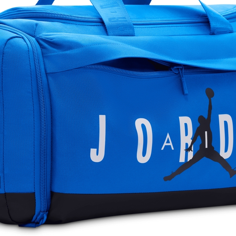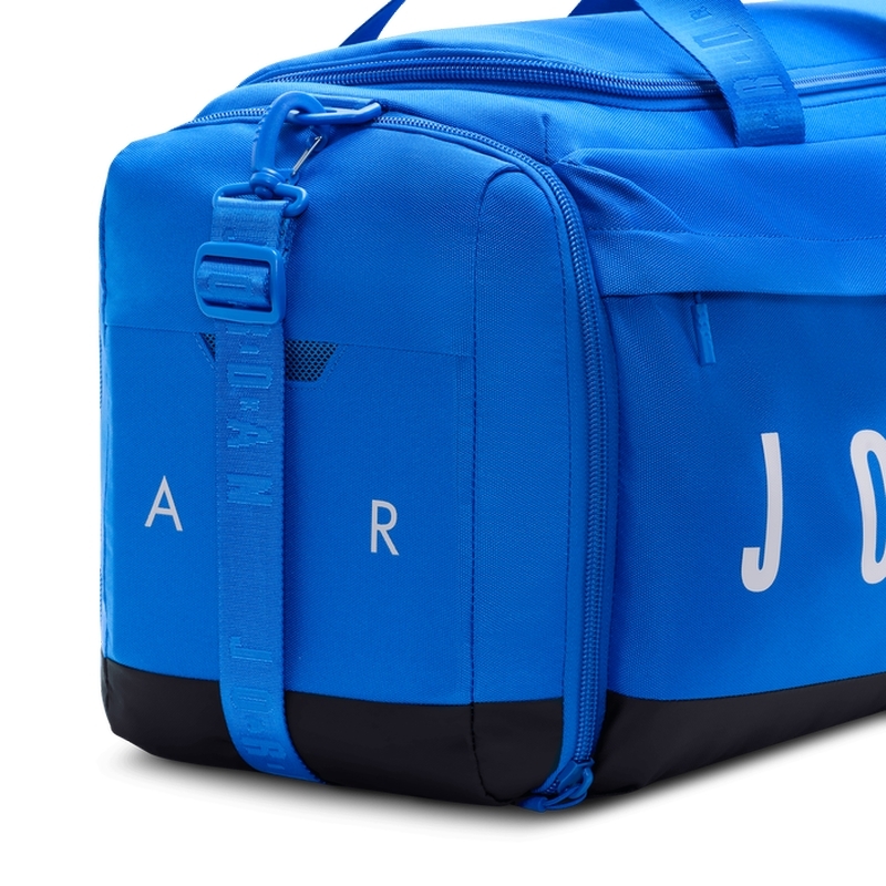 Whether you need a way to haul your gear to the game or you need a spacious overnight bag, the Jordan Velocity Duffle has you covered. It features the Jumpman wordmark logo and the main zippered compartment has an inner zippered drop pocket to help you keep smaller items in their place. The vented shoe garage on the side helps you keep your things in the main compartment clean and the media organizer inside the front zip pocket helps you secure smaller items you don't want lost in the shuffle of the main compartment. Durable poly fabric. 2-way zippered main compartment. Internal zip drop pocket and media organizer. Zippered shoe garage on right side. Large zippered pocket on the front. Top handles with sewn on pad and hook-and-loop closures. Removable, adjustable shoulder strap with adjustable pad. 11.75"H x 25"L x 13"D; Strap Length: 51" (longest), 31.74" (shortest)