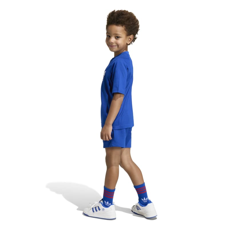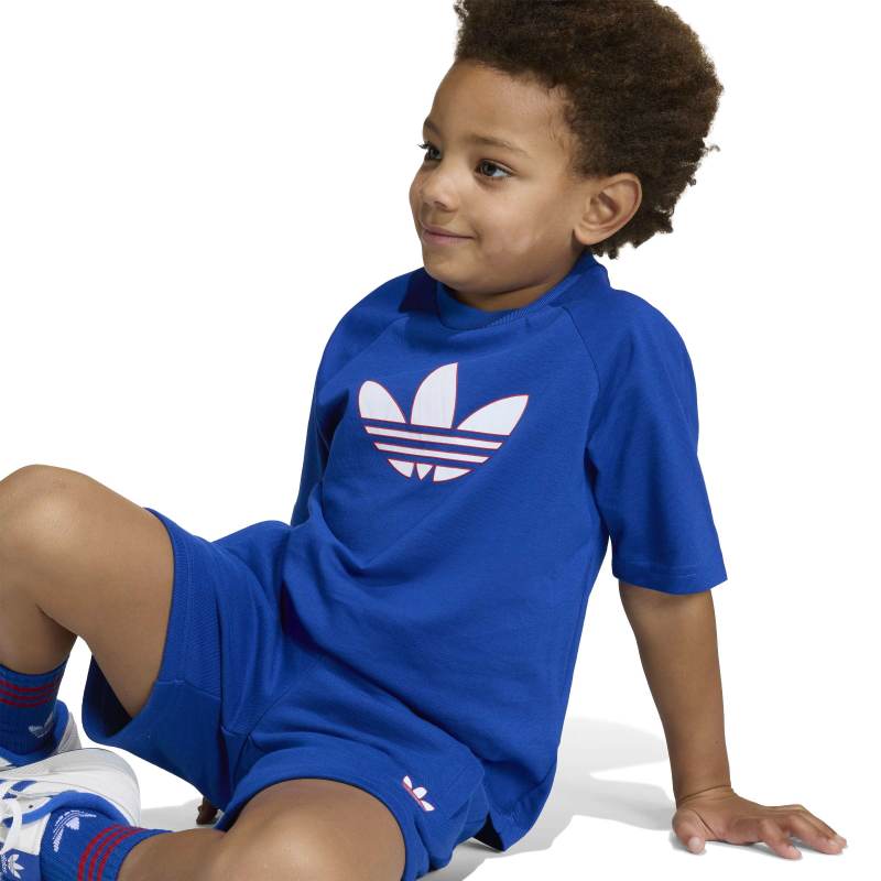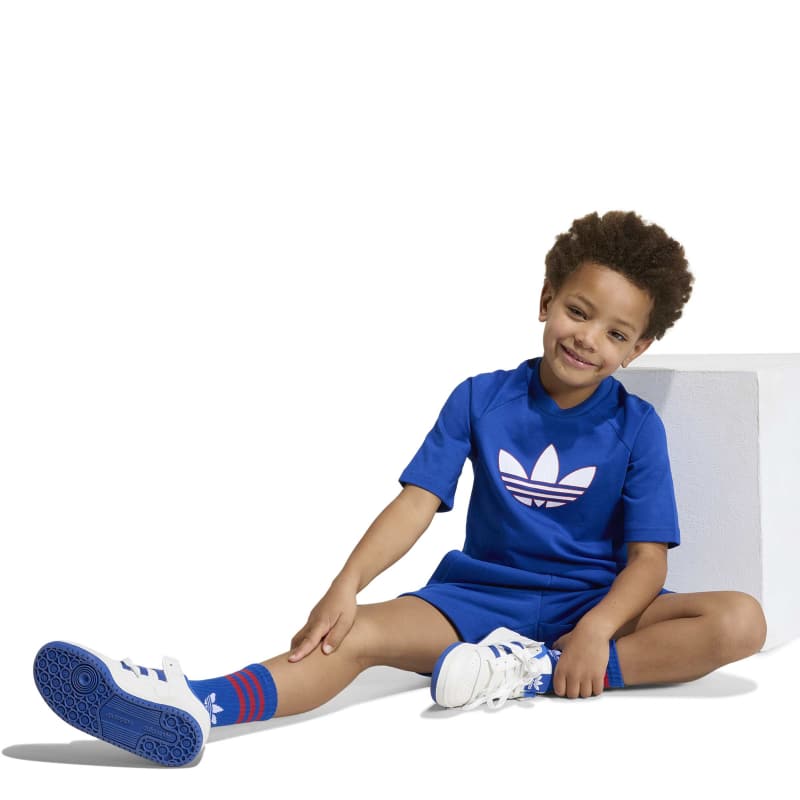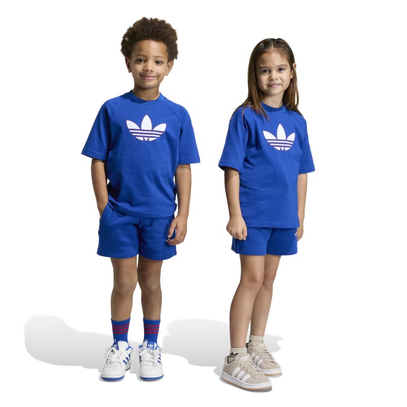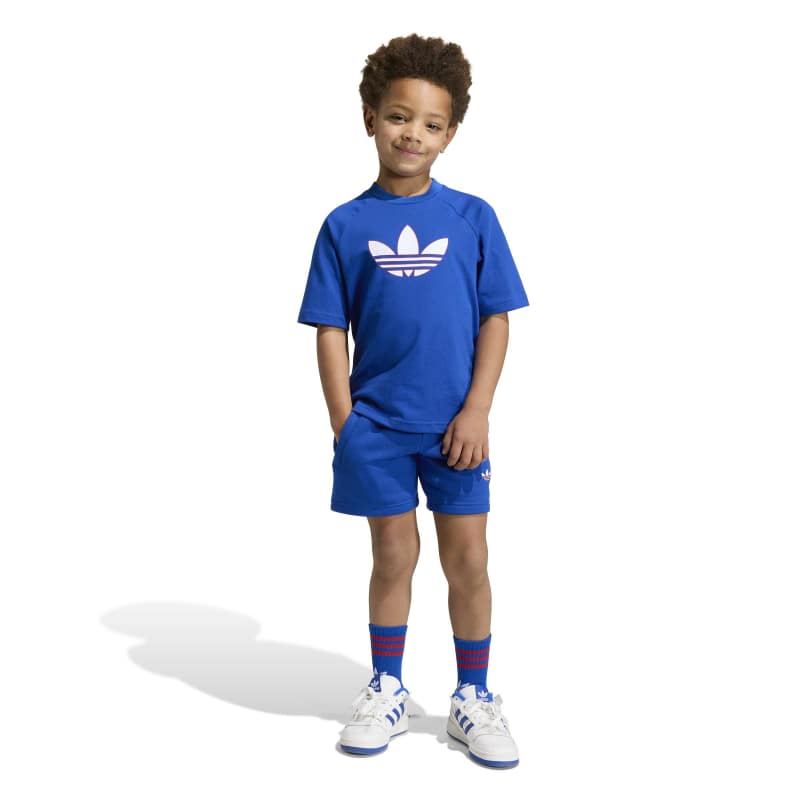 Part of the iconic Adicolor collection, the Trefoil loose shorts and T-Shirt set is a celebration of adidas' rich history, blending classic elements with contemporary design. With a bold Trefoil logo on front of the shirt and the side of the shorts, this set embodies the classic adidas spirit. Crafted with little adventurers in mind, this set offers a soft touch and breathable comfort, great for kids on the go. The loose fit T-Shirt allows for easy movement, while the drawcord shorts offer a secure fit during playtime or sports practice. Whether it's a day at school or a weekend adventure, this set is designed to help your little ones feel stylish and comfortable. Embrace the vibrant spirit of adidas Originals with designs that speak to a modern yet authentic attitude, and let your kids express themselves in comfort and style.