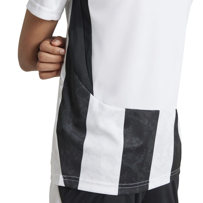 The moon landings showed humankind that teamwork made anything possible. With a return to Earth's closest neighbour on the horizon, this juniors' Juventus jersey from adidas looks forward with a lunar surface-inspired graphic embossed onto its soft fabric. High-tech AEROREADY and a premium embroidered badge work together to help football fans discover new levels of comfort and pride.This product is made with 100% recycled materials. By reusing materials that have already been created, we help to reduce waste and our reliance on finite resources and reduce the footprint of the products we make.