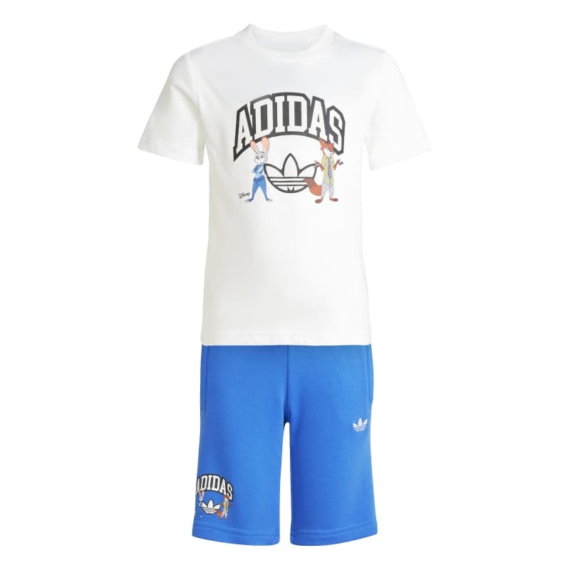 This t-shirt and shorts set from adidas is perfect for kids who know how to have fun. Soft single jersey fabric, an elastic waist and ribbed details keep them comfortable. Playful graphics show Nick Wilde and Judy Hopps from Disney's "Zootopia" as they take on the world.