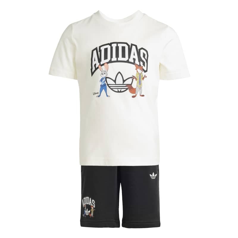 This t-shirt and shorts set from adidas is perfect for kids who know how to have fun. Soft single jersey fabric, an elastic waist and ribbed details keep them comfortable. Playful graphics show Nick Wilde and Judy Hopps from Disney's "Zootopia" as they take on the world.