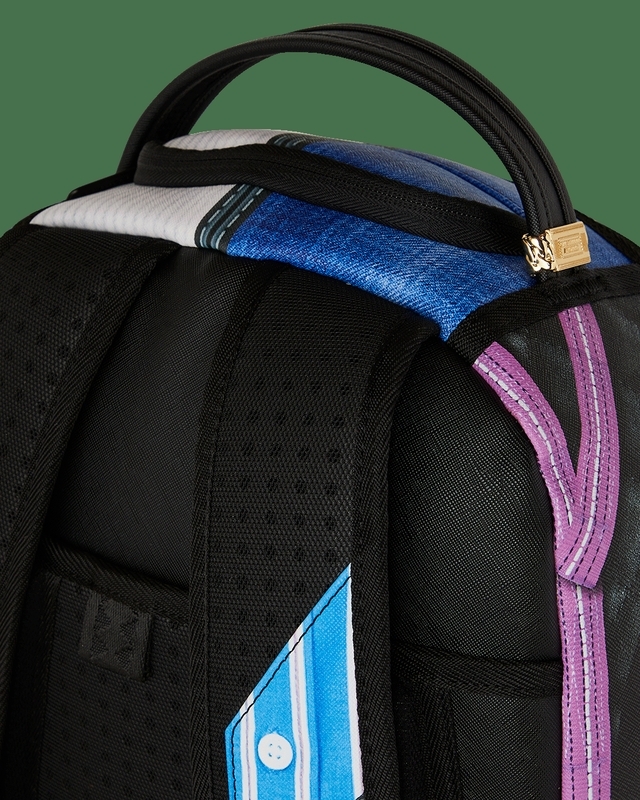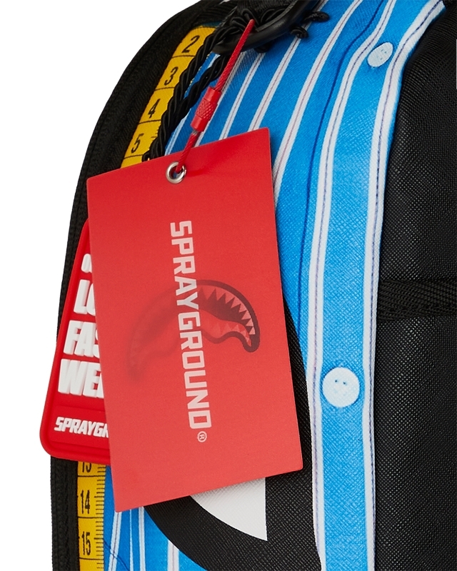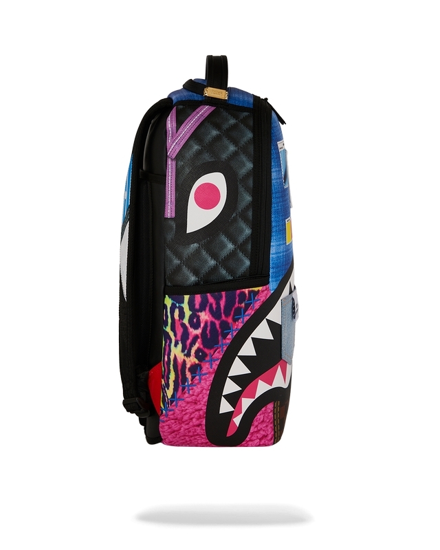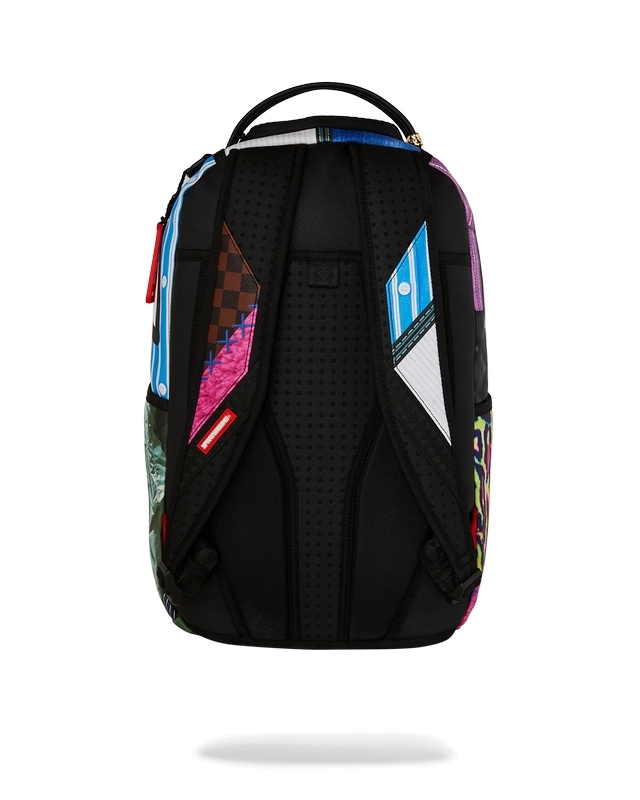 Dimensions: 18" x 6" x 11.5" • Front zipper pocket • Side pockets • Zippered Stash pocket • Separate velour sunglass compartment • Ergonomic mesh back padding • Adjustable Straps for custom sizing • Gold zippers with metal hardware • Metal "Sprayground Authentic" badge • Slide through back sleeve connects to carry-on luggage to free your hands