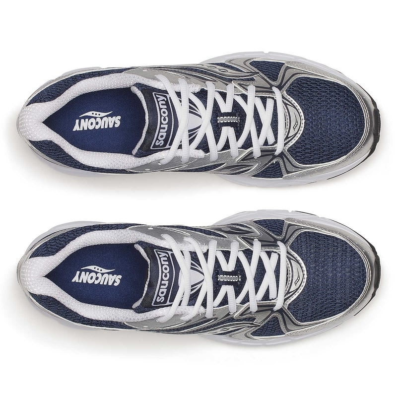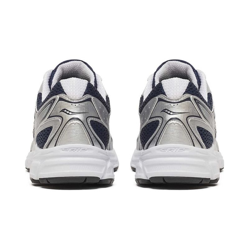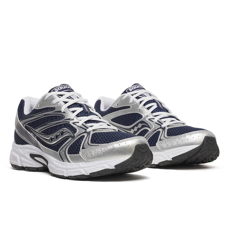 The Saucony Grid Ride Millennium in 'Navy Silver' showcases a unique Y2K design while ensuring a comfortable fit. Its upper is crafted from breathable navy mesh complemented by shiny synthetic leather overlays in metallic silver, enhancing both style and support. The shoe features an EVA midsole equipped with Saucony's signature Grid technology, providing excellent stability and cushioning for a variety of activities. Furthermore, the durable rubber outsole is designed with flex grooves to promote natural foot motion, making this sneaker ideal for casual and lifestyle wear. The combination of materials and innovative technologies makes the Ride Millennium a standout choice for those seeking comfort and trend.