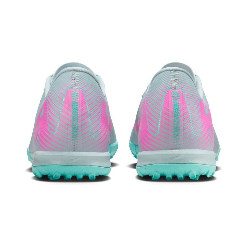 Looking to take your speed to the next level? We made these Academy shoes come with an improved heel Air Zoom unit. It gives you the propulsive feel needed to break through the back line. The result is the most responsive Mercurial we've ever made, so you can dictate pace and tempo all match long.. Product Features: The upper is made of NikeSkin with embedded chevrons, which helps provide ball control and truly gives you a feeling of barefoot soccer.. Rubber outsole gives you traction for turf surfaces.. We’ve upgraded the stretch mesh from the previous generation to an adaptable knit that offers flexibility, provides support and brings you closer to the ball.. Amplified Touch. Fast Traction. Snug Fit. Product Details: For use on shorter, synthetic surfaces. Cushioned insole.