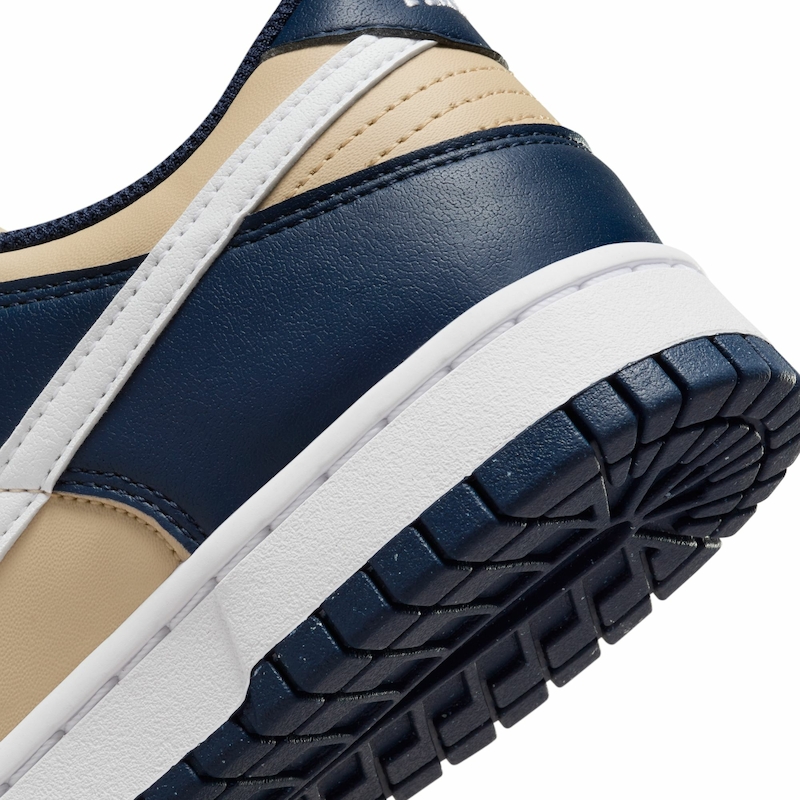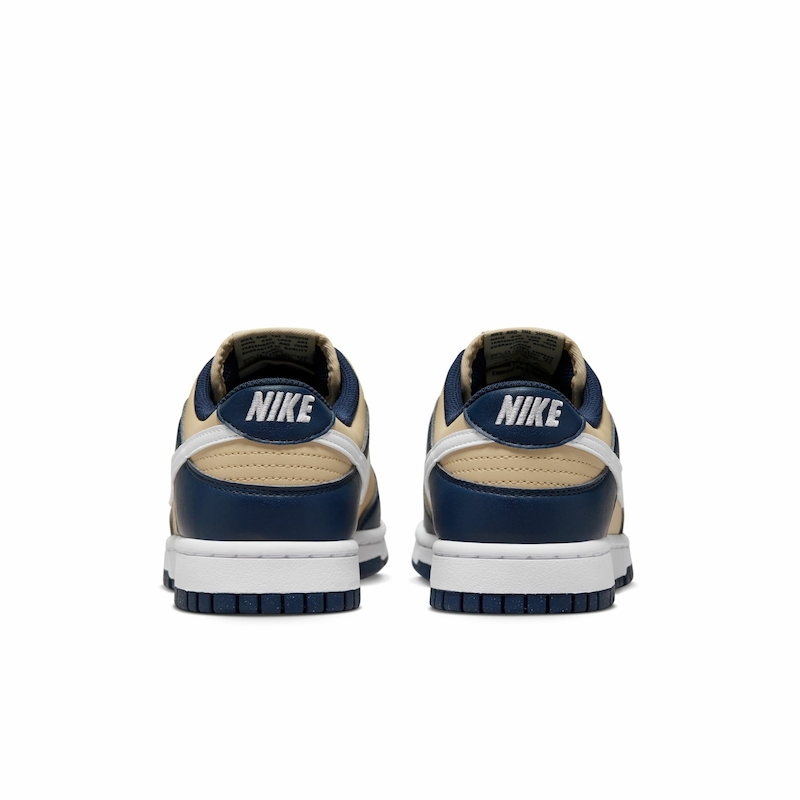 Crafted from a complete synthetic leather upper, the shoe ensures breathability through toe box perforations, complemented by mesh tongues and inner lining. The core of the design rests on a Team Gold foundation and tongues, overlaid with Navy accents on laces, liner, heel tabs, and the durable rubber outsole. White Swooshes add a clean contrast, while Nike’s iconic pinwheel logo graces the insoles. Additionally, embroidered branding adorns the heel tabs and midsole, concluding the ensemble with finesse.