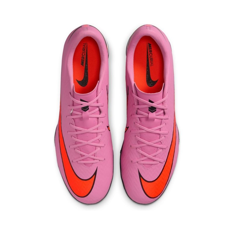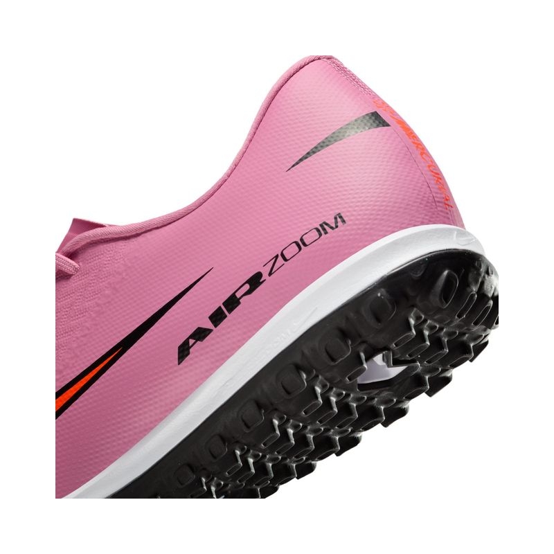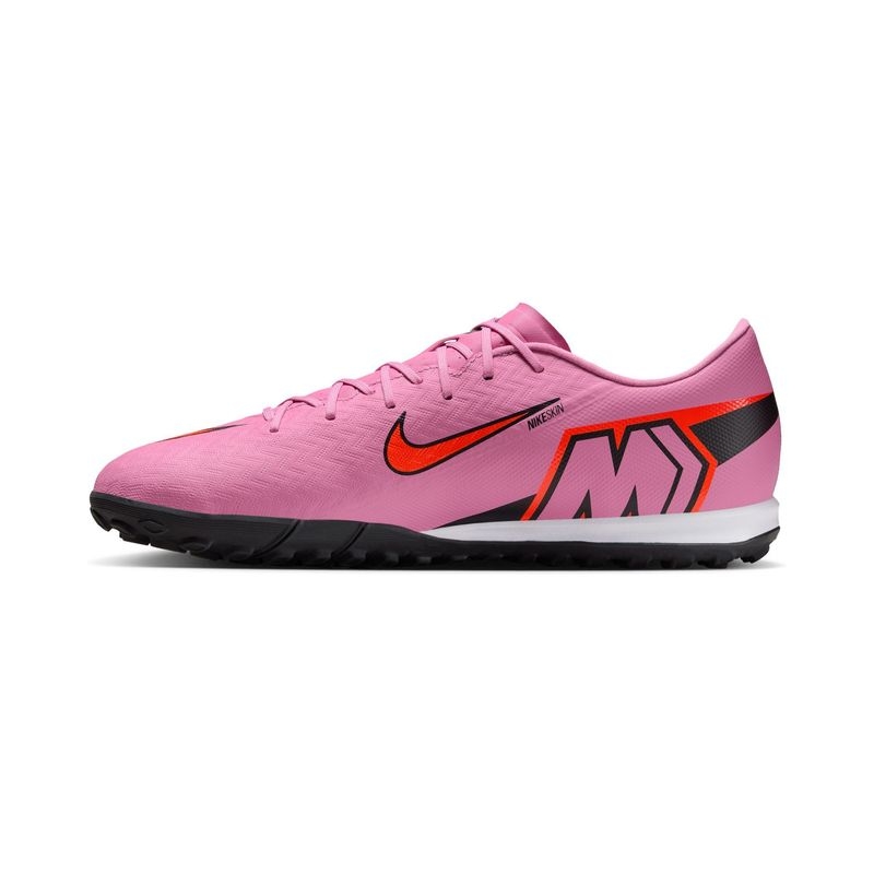 Looking to take your speed to the next level? We made these Academy shoes come with an improved heel Air Zoom unit. It gives you the propulsive feel needed to break through the back line. The result is the most responsive Mercurial we've ever made, so you can dictate pace and tempo all match long.. Product Features: The upper is made of NikeSkin with embedded chevrons, which helps provide ball control and truly gives you a feeling of barefoot soccer.. Rubber outsole gives you traction for turf surfaces.. We’ve upgraded the stretch mesh from the previous generation to an adaptable knit that offers flexibility, provides support and brings you closer to the ball.. Amplified Touch. Fast Traction. Snug Fit. Product Details: For use on shorter, synthetic surfaces. Cushioned insole.