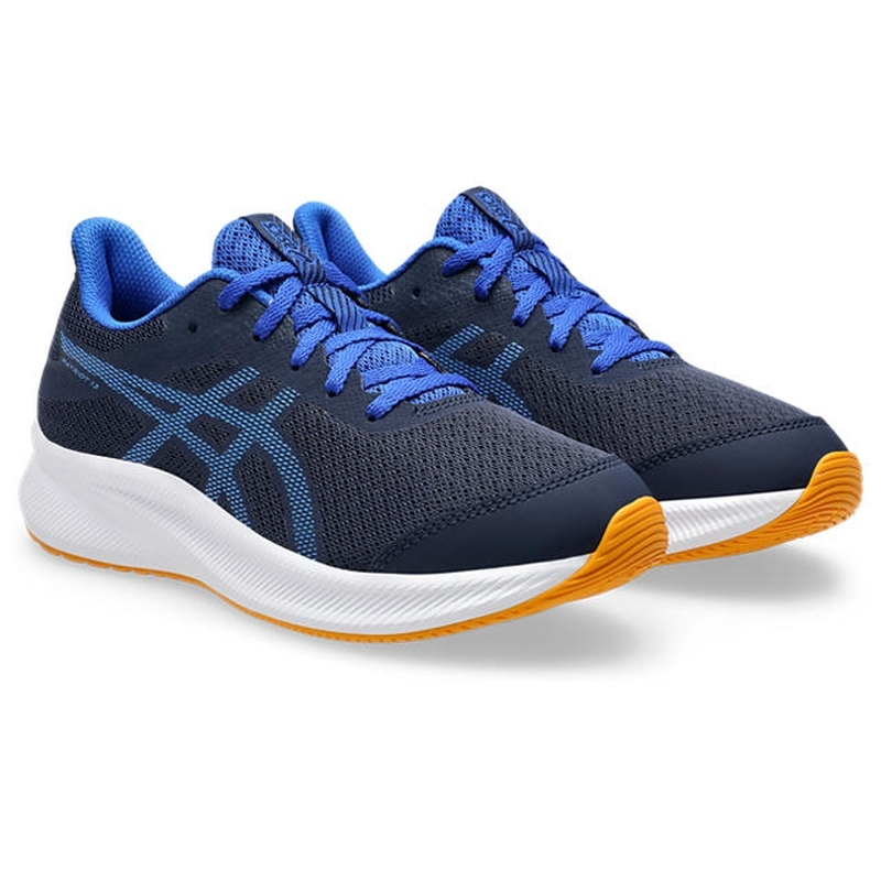 The PATRIOT 13 GS (Grade School) shoe is designed for active feet. It's made with a bouncy midsole that also delivers a cushioned underfoot feeling. This shoe is also constructed with a breathable mesh upper to promote better airflow, which helps keep feet cool. A layer of EVA foam in the midsole offers good shock absorption. PRODUCT FEATURES : EVA cushioning Mesh upper At least 20% of the upper's material is made with recycled polyester The sockliner is produced with the solution dyeing process that reduces water usage by approximately 33% and carbon emissions by approximately 45% compared to the conventional dyeing technology