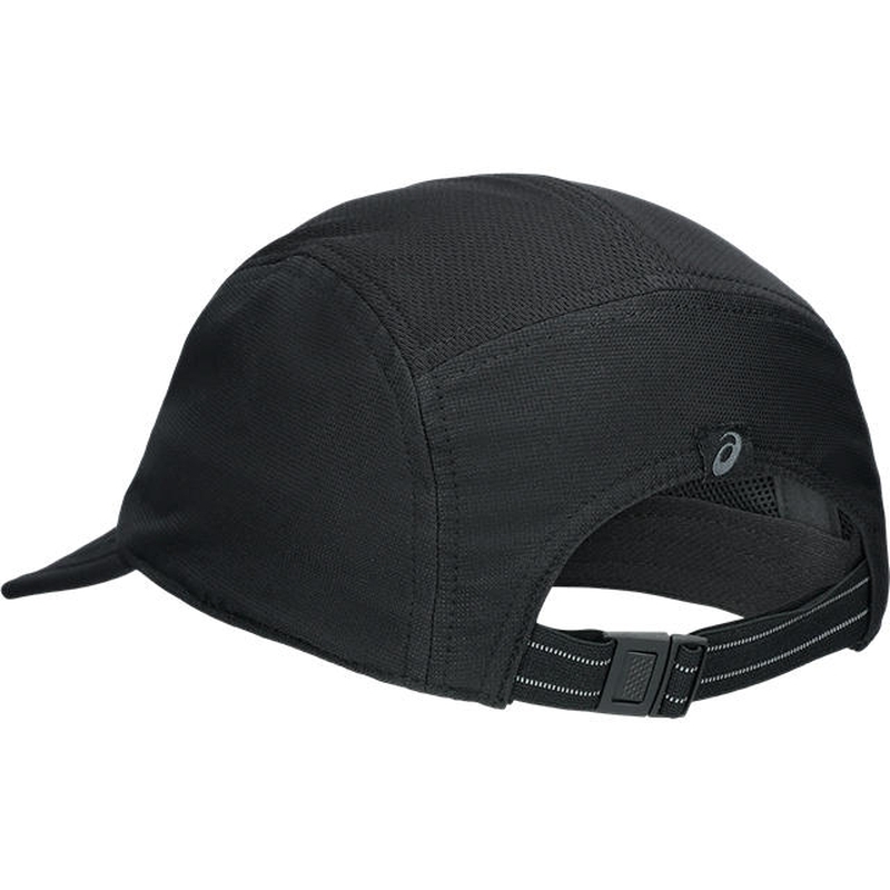 This running cap is designed for everyday runners that prioritize performance and comfort. It features a lightweight, stylish, and sleek 5 panel construction. The mesh panels help improve ventilation for good airflow, while the adjustable strap in the back helps provide a custom fit. The hat is designed with reflective details for visibility in low light conditions. 5 panel design Mesh panels help improve ventilation Lightweight Adjustable strap Hard brim Printed ASICS logo in front Woven ASICS Spiral logo on back