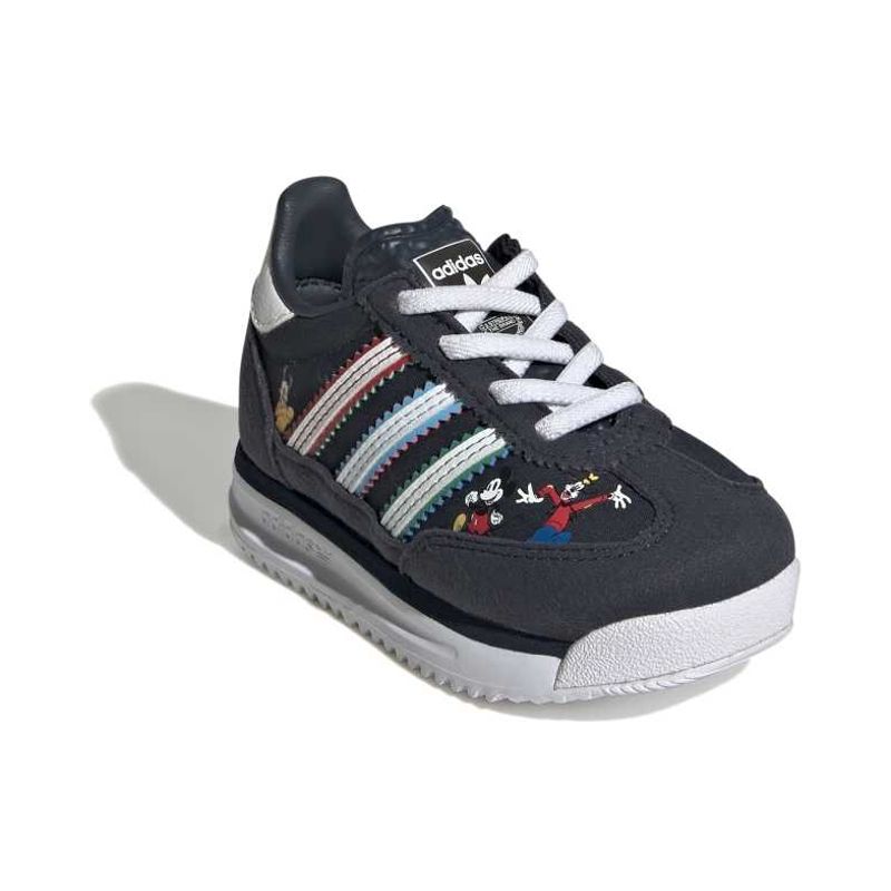 Disney's Donald Duck and Minnie Mouse are along for the ride in these kids' SL 72 shoes from adidas. The two characters pop up on the sides, along with signature 3-Stripes framed with extra colour. An EVA midsole keeps each movement light and lively, while a rubber toe bumper elevates durability as little ones explore.