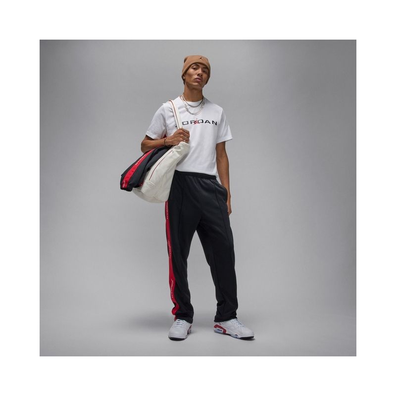 Suit up the Jordan way. Smooth double-knit fabric and a stretchy elastic waistband keep these easy-fitting pants comfortable. Branded taping and pintuck details add classic tracksuit style.