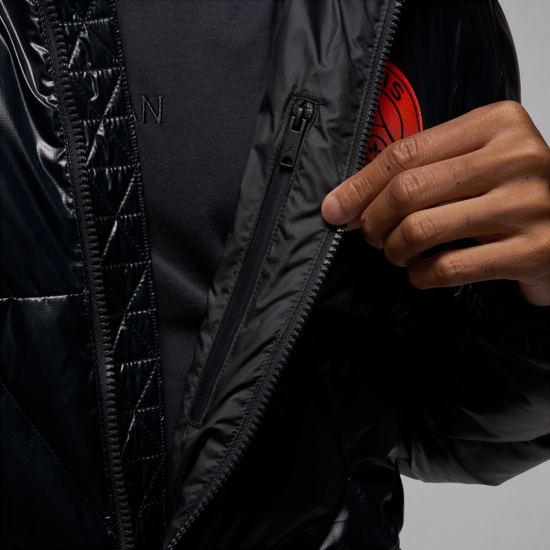 Stay ready for cold weather in this PSG parka. With insulating Nike Therma-FIT technology and lightweight PrimaLoft® insulation, this roomy water-repellent layer packs serious warmth. A sleek Ripstop shell stands up to rips and tears, while a tall collar, spacious hood and knee-length design provide generous coverage from the elements.