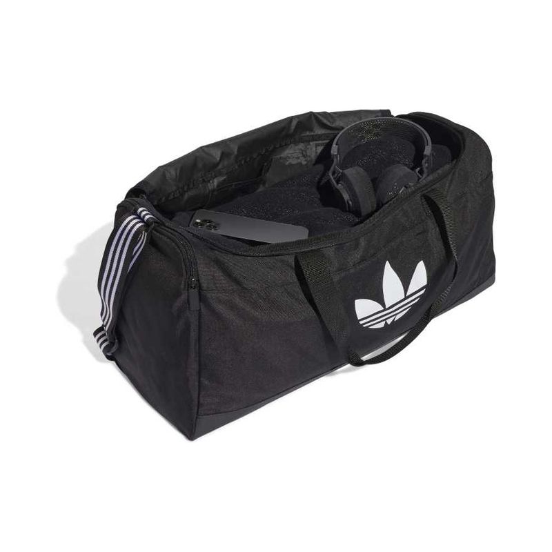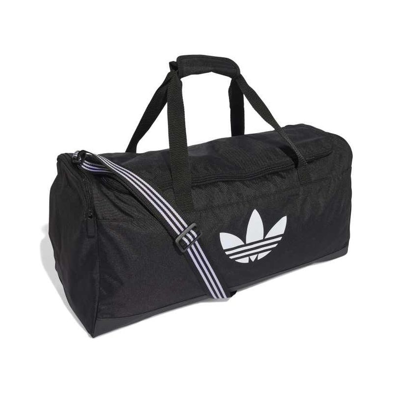 This adidas duffel bag is perfect for weekend getaways or trips to the gym. The spacious main compartment has room for all your essentials, and an adjustable shoulder strap makes it easy to carry. Made from durable polyester plain weave fabric, this bag is built to last.