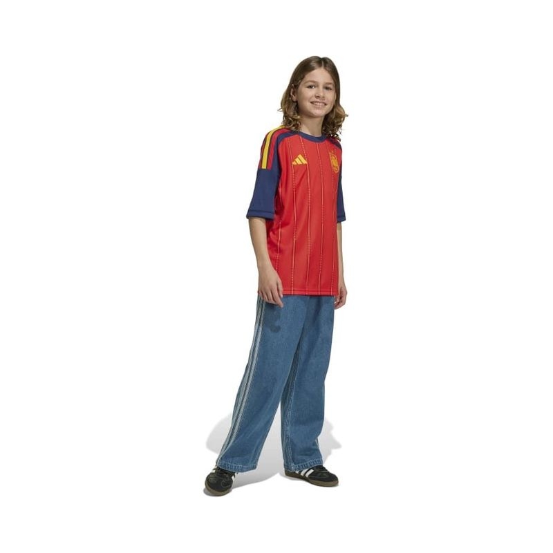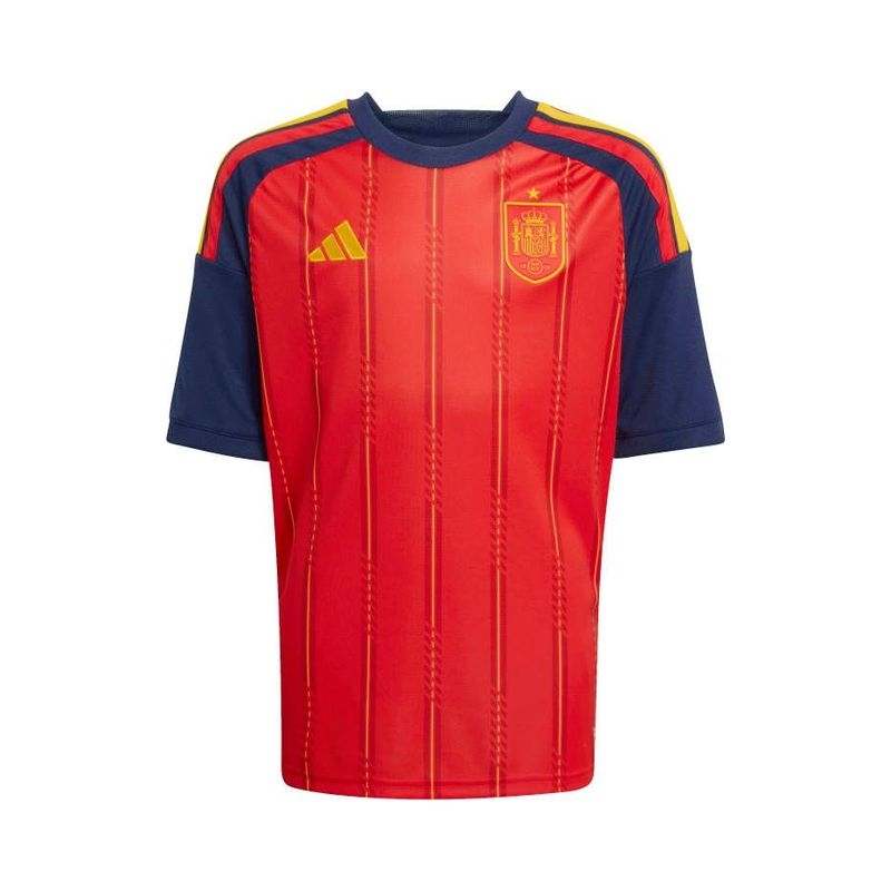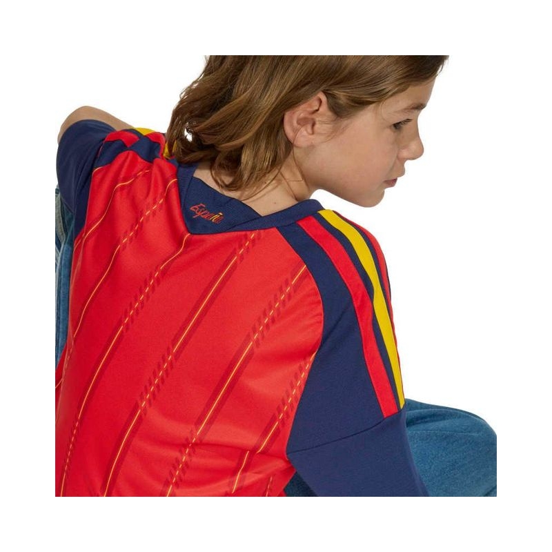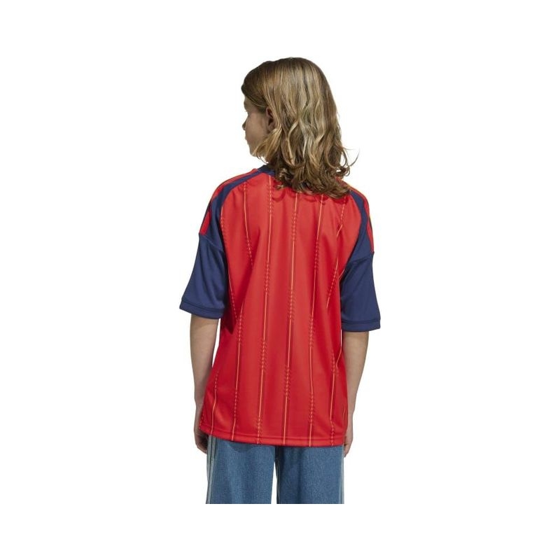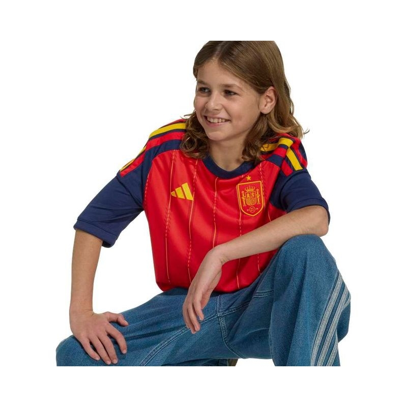 The Spain 26 Home Jersey is a celebration of Spanish football heritage. Inspired by the vibrant colours of the Spanish flag, it is designed for young football fans and offers style and performance both on and off the pitch. COOL. DRY. READY. Climacool wicks and disperses sweat for a cool, dry and distraction-free performance. The soft knit fabric is quick drying, helping kids to feel dry and comfortable during matches or playtime. The regular fit of the jersey offers flexibility and freedom of movement, while the rib collar gives it a classic feel. The adidas logo and 3-Stripes combined with the team’s crest add authenticity, creating an overall elegant look. Whether they're playing in a match or cheering on their team from the stands, young fans and players will love this jersey from adidas, which embodies the spirit of Spanish football.
