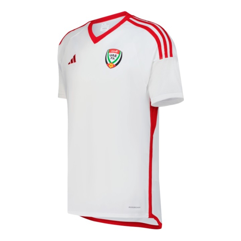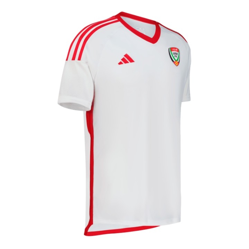 Signifying a new era for UAE football, the jerseys seamlessly blend tradition with innovation and are inspired by the red, black, white and green colors featured on the UAE flag, with the Home kit boasting a classic white canvas adorned with the iconic three red stripes. With moisture-absorbing AEROREADY technology, the base fabric is crafted by adidas for optimal performance and made entirely from recycled materials, reflecting our commitment to sustainability.